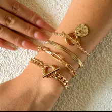 Unlike ordinary chain bracelets, this piece is a fusion of bold punk styling and timeless vintage elegance. The combination of Cuban and snake chain elements, the antique-look coin pendant, and the shimmering gold color make it a conversation starter wherever you go. Whether you wear it alone for a minimalist edge or layer it with other bangles for a stacked look, it’s designed to be noticed. Gift it to someone special or make it your own — either way, it’s a keepsake that will never go out of style.