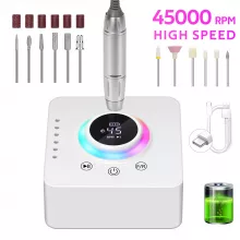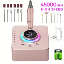 Elevate your nail care routine with this high-speed electric nail drill, designed to deliver professional results from the comfort of your home. With speeds reaching up to 45,000 RPM, this nail drill makes sanding, polishing, shaping, and removing gel polish effortless and precise. Its quiet operation ensures a comfortable experience for both beginners and seasoned nail technicians alike. Compact, lightweight, and portable, this tool is perfect for at-home nail enthusiasts or busy salon professionals who need reliable performance on the go.