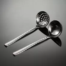 What sets this spoon apart is its combination of artistic design and practical application. The hammered texture not only lends sophistication to your kitchen but also provides a comfortable grip for cooking. The high-quality stainless steel construction ensures you can rely on it for years to come without worrying about wear and tear. This spoon is more than just a cooking utensil; it’s a stylish accessory that embodies your passion for cooking while adding character to your kitchen collection.