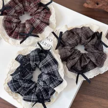 Embrace Elegance with Our Retro Plaid Lace Hair Scrunchies
