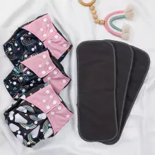 Give your little one the comfort they deserve with these ultra-soft reusable cloth diapers. Designed with care, they feature a breathable polyester outer layer combined with bamboo charcoal inserts for maximum absorbency and skin-friendly protection. Each set includes 3 cloth diapers and 3 bamboo charcoal inserts, making diapering both eco-friendly and convenient.
