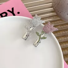 Crafted from high-quality alloy and encrusted with sparkling rhinestones, the set features two unique designs — a delicate tulip flower clip measuring approximately 1.85in x 0.87in and a charming star hairpin measuring about 1.65in x 1.38in. Both pieces are lightweight, comfortable to wear, and secure enough to keep your hairstyle in place all day.