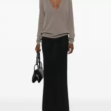Step into a world of unparalleled comfort and effortless style with the Rick Owens Cashmere Sweater. Crafted from the finest cashmere, this luxurious sweater offers the perfect blend of softness and sophistication, making it an essential addition to your wardrobe. Its wide V-neck front adds a touch of modern flair, while the monochrome pattern ensures versatility, seamlessly fitting into any collection. Whether you’re dressing up for a night out or keeping it casual, this sweater is designed to make a statement without saying a word.