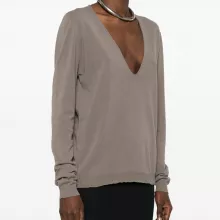 This sweater is not just a piece of clothing; it’s a statement of sophistication and class. The rich texture of cashmere feels like a second skin, while the modern design elements ensure you always look your best. Its versatility makes it ideal for any occasion, from casual days to more polished outings. The wide V-neck adds a dash of contemporary appeal, while the ribbed details elevate the design, offering both style and comfort. It’s the ultimate wardrobe staple that transitions easily from day to night, layering over shirts or wearing solo with your favorite jeans.
