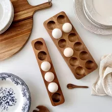 This elegant egg tray isn’t just for storage—it’s a beautiful accent piece that elevates your kitchen space. The smooth wooden surface highlights the natural grain of acacia wood, making each tray unique. Whether you’re preparing breakfast, baking, or setting up a farmhouse-inspired kitchen display, this tray keeps your eggs neatly organized and easy to access.