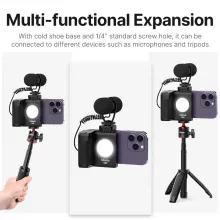 - Expandable and versatile: Cold shoe base and standard 1/4-inch screw hole for microphones or tripods