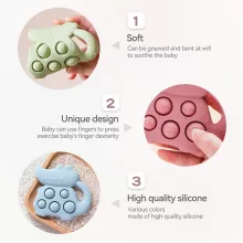 Not just a teether, this baby toy doubles as a sensory rattle, stimulating your baby’s senses while helping to develop fine motor skills. The gentle rattling sound encourages auditory development, while the varied textures massage sore gums, offering instant relief. Whether your baby is teething, playing, or simply needs a soothing distraction, this toy is always the right choice.