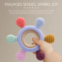- Dual Texture Design: Soft silicone ring to massage gums and smooth wooden ring for variety in chewing.