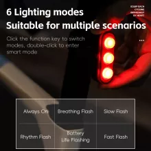 Whether you’re commuting through city streets, training after dark, or exploring trails at night, this smart taillight is your reliable partner for safe riding. Its bright LED lights and intelligent sensing technology make every ride safer and more enjoyable.