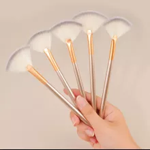 This brush is not only lightweight and portable but also incredibly gentle on your skin. Its fan-shaped head ensures even product distribution, making it the perfect tool for delicate applications. Whether you’re at home or on the go, it fits neatly into any makeup pouch, ready to elevate your beauty rituals wherever you are.