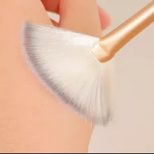 Unlike standard brushes, this fan brush combines efficiency and gentleness. Its wide fan shape glides smoothly across the face, delivering a professional finish while caring for your skin. No harsh chemicals, no bulky tools – just a simple, elegant brush that does it all.
