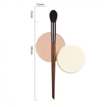The brush is crafted with luxurious goat hair bristles that are gentle on your skin, perfect for even the most sensitive complexions. Its sturdy wooden handle offers a comfortable grip, giving you precision control during application. The tapered shape glides effortlessly over cheekbones, brow bones, and jawlines, making it ideal for both powder and highlighter products.