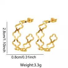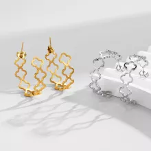 Elevate your daily style with these elegant stainless steel geometric C-shaped earrings featuring a hollowed-out four-leaf clover design. Perfect for women who appreciate trendy yet timeless accessories, these earrings add a subtle touch of luck and charm to any outfit. Their unique shape and delicate details make them a versatile addition to your jewelry collection, ideal for everyday wear or special occasions.
