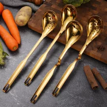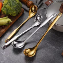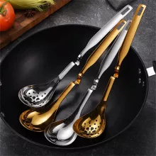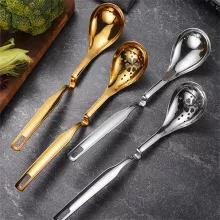 This stainless steel colander spoon is your go-to tool for a variety of cooking moments. Use it while boiling pasta, skimming oil, serving soup, or ladling porridge. It’s ideal for both home cooks and professional chefs who value performance and presentation in the kitchen. Available in elegant gold or sleek silver finishes, it also adds a modern touch to your kitchen décor.