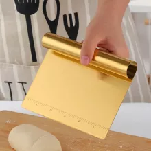 Bring professional quality into your kitchen with this elegant and functional Gold & Silver Pastry Dough Cutter. Designed for home bakers and seasoned chefs alike, this stainless steel scraper and chopper is your all-in-one solution for prepping dough, slicing pizza, and even measuring portions with exact accuracy. Its sleek silver and gold finish adds a modern, premium touch to your baking tools, while the durable stainless steel ensures long-lasting performance.
