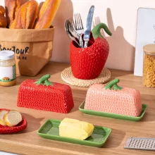 Transform the way you serve and store your favorite foods. With its elegant design and versatile purpose, the Strawberry Ceramic Butter & Cheese Plate makes a lovely addition to any home. Bring color, charm, and function to your kitchen — order yours today and enjoy a taste of cheerful sophistication with every meal!