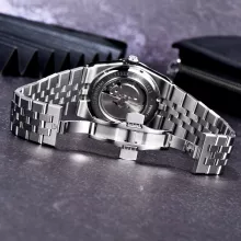 Powered by a mechanical automatic movement, this watch runs smoothly without the need for batteries, harnessing your natural wrist movement to keep perfect time. The sturdy stainless steel case and band ensure lasting durability, while the sapphire crystal dial window resists scratches to maintain a flawless look. Its 10 Bar (100 meters) water resistance makes it ideal for both everyday wear and aquatic activities, giving you peace of mind wherever you go.