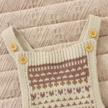 Dress your baby in comfort and style with this charming striped knit romper, perfect for newborns and infants up to 18 months. Crafted from soft, breathable acrylic, this sleeveless jumpsuit is designed to keep your baby cozy all year round. The lightweight knit fabric is gentle on delicate skin, making it an ideal choice for everyday wear in any season.