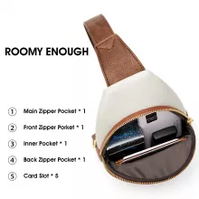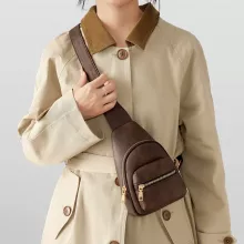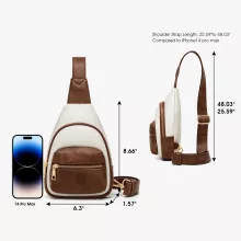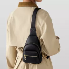 Crafted with high-quality PU leather, this sling bag exudes sophistication while offering durability and ease of maintenance. The soft texture and solid pattern make it a timeless piece that pairs well with any outfit. The adjustable strap ensures a comfortable fit, allowing you to wear it as a chest bag, crossbody, or even as a traditional fanny pack. Its compact yet spacious design provides ample room for your essentials, with an interior slot pocket for your phone, keys, and cards, and an exterior silt pocket for quick access to small items.