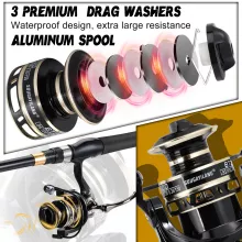 This full kit combines a lightweight telescopic carbon fiber rod with a high-performance spinning reel, offering an all-in-one solution for anglers seeking convenience and versatility. Its durable construction, ergonomic design, and adaptable length make it perfect for travel and everyday fishing. Whether you are exploring rivers, lakes, or coastal waters, this set ensures a smooth and rewarding fishing experience, helping you land your next big catch with ease and confidence.