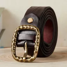 Made from premium washed leather, this belt is designed to withstand the test of time. Its 3.8 cm (approximately 1.5 inches) width gives it a substantial presence, ideal for pairing with jeans or dress pants. The striking copper buckle, measuring 7 cm, not only enhances the belt’s visual appeal but also ensures a secure and stylish fastening. The carved details bring personality to any outfit, making this belt a versatile addition to your accessory collection.