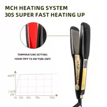 This hair styling tool combines advanced technology with user-friendly features to make every styling session effortless. With multiple temperature settings ranging from 170°F to 450°F, it’s suitable for every hair type—from fine and delicate to thick and coarse. The titanium plates glide smoothly without snagging, while the MCH heating element ensures consistent heat distribution for even, long-lasting results.