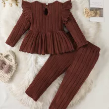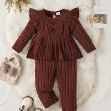 Dress your little one in cozy elegance with this 2-piece toddler girl autumn outfit, designed to keep her comfortable while looking irresistibly cute. The set features a soft, long-sleeved top with a charming bow accent and matching pants, blending a gentle Korean-style design with everyday practicality. Crafted from a breathable polyester-spandex blend, it offers the perfect balance of softness, stretch, and durability, making it an ideal choice for active toddlers aged 0–3 years.