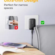 Experience fast charging like never before with this ultra-thin 30W USB-C wall charger. Built with advanced GaN technology, it’s incredibly compact and only 0.53 inches thick, making it perfect for tight spaces behind your sofa, bed, or any hard-to-reach outlet. Despite its slim design, it packs a powerful punch with smart V-Dynamic charging that ensures your devices charge at the fastest possible speed every time.