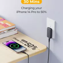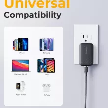 This charger is ideal for travelers, home use, or anyone who values a clutter-free space without compromising on performance. With Power Delivery support, it can charge an iPhone 14 Pro up to 50% in just 30 minutes. It’s also universally compatible, working with the latest smartphones, tablets, and USB-C devices, including those that use Qualcomm Quick Charge, Samsung Adaptive Fast Charge, and Huawei SuperCharge protocols.