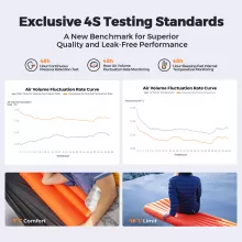 Featuring a high-performance 5.6 R-Value, this sleeping pad is engineered to keep you warm even in freezing temperatures. With a comfort rating down to 19.4°F and an extreme limit of -0.4°F, it’s perfect for cold-weather camping. The interior is filled with 240g/m² aluminum-coated cotton, combining polyester fiber with PET aluminum plating for excellent heat retention and durability.