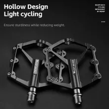 Crafted from high-quality aluminum alloy with a Cr-Mo steel axle, these pedals are made to withstand tough terrains and heavy use. Their widened platform gives your feet more surface area for better stability and comfort during long rides. The hollow design reduces unnecessary weight without sacrificing strength, making them ideal for riders who demand both performance and efficiency.