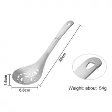 Introducing our Ultralight Titanium Slotted Spoon, the essential kitchen tool for those who love to cook! This versatile strainer is perfect for draining noodles, serving salads, or finessing fried foods. Made with high-quality TA1 titanium, this cooking utensil combines durability and functionality, making it ideal for home kitchens as well as outdoor cooking adventures.