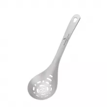 This sleek slotted spoon is designed with impressive features: