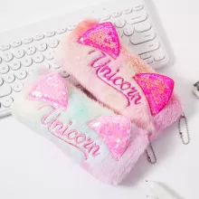 Unicorn Plush Sequin Pencil Case – Cute School & Office Stationery Pouch