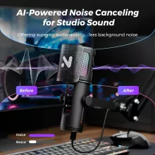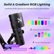 This microphone combines high-end performance with eye-catching aesthetics. Featuring a cardioid pickup pattern, it isolates your voice for crystal-clear communication, while the adjustable boom arm and integrated pop filter ensure the perfect position and smooth sound. Add a pop of personality to your setup with 8 customizable RGB lighting modes or keep it professional with the lights off—your choice. Plus, real-time monitoring with a 3.5mm headphone jack lets you hear your voice exactly as your audience does, all with zero latency.