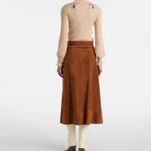 Valentino’s Embroidered Floral Cardigan is a masterpiece of refinement and sophistication. This exquisite garment features a blend of classic and contemporary design elements, making it the perfect addition to your wardrobe. With intricate embroidered flowers adorning the front and back, this cardigan exudes timeless elegance. The lightweight pointelle knit adds texture and a touch of transparency, while the voluminous balloon sleeves provide a feminine silhouette. The ribbed crew neck, cuffs, and hem ensure a comfortable, well-structured fit, making it both stylish and practical.