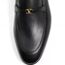 These loafers feature a sleek round-toe design and a convenient slip-on style, ensuring easy wear and supreme comfort. The centerpiece of these shoes is the striking three-dimensional VLogo plaque on the front, offering a distinctive and sophisticated appeal. The contrasting logo insole and leather heel add the final touches of luxury, creating a harmonious blend of classic and modern aesthetics.