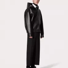 Experience luxury and style with the Valentino Lambskin Hooded Jacket. Crafted from premium lambskin, this jacket combines sophistication with practicality, making it a standout addition to your wardrobe. Its sleek monochrome design, front zipper closure, and functional welt patch pockets deliver a contemporary yet timeless look. Whether you’re layering up for a chilly day or making a statement, this jacket is the perfect blend of comfort and fashion.
