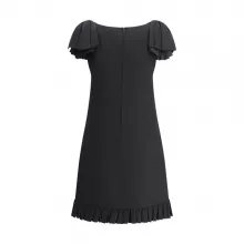 Practical yet stylish, this mini dress features pockets on the hips, allowing you to keep your essentials close while maintaining the dress’s elegant silhouette. The back zipper closure ensures a secure and comfortable fit, giving you the confidence to wear it from morning to night. With its versatile design, this dress transitions beautifully from formal events to more casual gatherings, offering a balanced mix of classic sophistication and modern details.