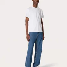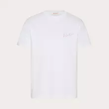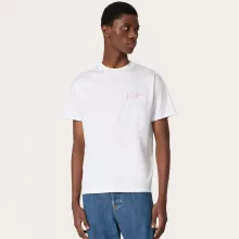 Featuring a ribbed crew neck and a clean monochrome design, this t-shirt is all about minimalistic elegance. The iconic Valentino logo graces the front in a contrasting color, making a statement while keeping it sleek. Turn it around, and you’ll find the signature Valentino monogram subtly displayed on the back, a mark of true designer craftsmanship.