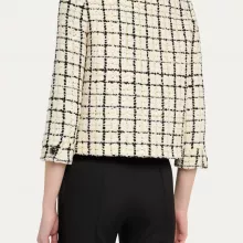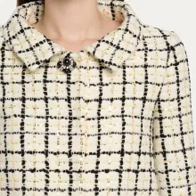 - Check Pattern with Sequins: The dynamic interplay of classic tweed and sparkling sequins ensures a captivating visual effect.