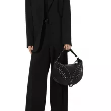 The Versace Black Small Hobo Shoulder Bag combines classic elegance with everyday practicality. The compact size is perfect for carrying your essentials, while the premium calf leather ensures a sophisticated look. The removable straps offer versatility, allowing you to switch between a top-handle or crossbody style, depending on your outfit or mood. The iconic Medusa logo and silver-tone accents make this bag uniquely Versace, adding a luxurious finish to any ensemble.
