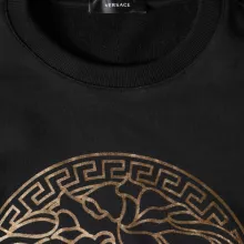Whether you’re dressing up for a special event or keeping it casual, this VERSACE sweater adapts to any occasion. Pair it with jeans for a laid-back look or dress it up with tailored pants for a more polished ensemble. The black color and simple design make it incredibly easy to mix and match with your existing wardrobe, while the luxurious cotton fabric adds that high-end touch to elevate your style. The iconic VERSACE logo ensures you stand out in a crowd, making this pullover sweater a must-have for those who value both fashion and quality.