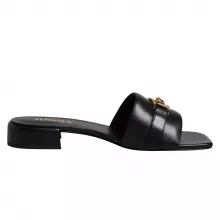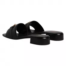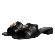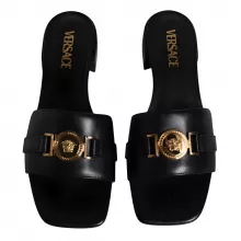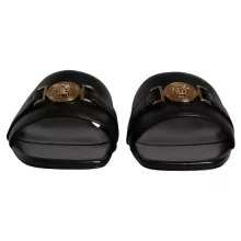Stylish & Comfortable VERSACE Black Leather Logo Plaque Slides