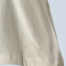 This Versace cotton t-shirt is a must-have for those who appreciate high-end design and luxurious details. Its simple yet sophisticated crew neck design pairs effortlessly with various outfits, while the iconic logo adds a distinctive touch of luxury to your look. The shirt is made in Italy, reflecting the quality craftsmanship and attention to detail that is synonymous with Italian fashion.