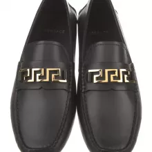 What sets these Versace loafers apart is their seamless combination of timeless design and contemporary elegance. The striking gold-toned hardware with the iconic Versace logo adds a signature touch, letting you express your unique sense of style effortlessly. Whether you’re making an impression at a formal event or adding a sophisticated edge to casual attire, these loafers ensure you’re always dressed to impress.