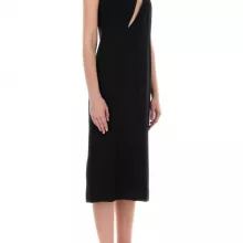 This Versace dress is your perfect companion for a variety of occasions. Whether it’s an elegant dinner, a cocktail party, or a formal event, its sleek design and natural viscose fabric ensure you feel as good as you look. The dress is designed to complement your figure, with its side detailing adding a subtle flair that enhances your overall look. The shoulder zipper closure not only provides functionality but also adds a unique style element, setting this piece apart from ordinary dresses.
