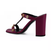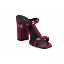 The Versace Purple High Heel Sandals are more than just footwear—they’re a statement of confidence and luxury. Designed for the modern woman, these sandals combine style and comfort effortlessly. The 3.1-inch heel offers just the right height to elongate your silhouette while remaining practical for extended wear. The bold purple hue, paired with gold-tone details and the iconic Medusa logo, ensures these sandals stand out in the most elegant way.