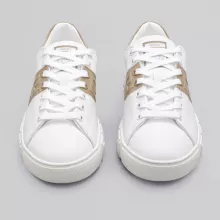 Designed for the fashion-forward individual, these sneakers are more than just footwear—they are a statement of luxury and exclusivity. The VERSACE Two-Tone Leather Low-Top Sneakers are perfect for any occasion that calls for a touch of elegance, whether you’re dressing up or down. The combination of white and brown leather creates a versatile look that pairs effortlessly with jeans, shorts, or even tailored pants. The platform sole not only gives you added height but also enhances comfort, making these sneakers ideal for all-day wear.