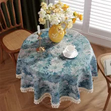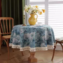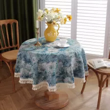 Elevate your home decor with this Vintage Blue Daisy Tassel Round Tablecloth. Crafted from a blend of polyester and cotton, this tablecloth combines the charm of vintage style with a refreshing modern touch. Featuring a beautiful jacquard design, it offers a rich texture and a luxurious feel. The intricate blue daisy pattern is both timeless and sophisticated, making it a perfect addition to any dining or coffee table.
